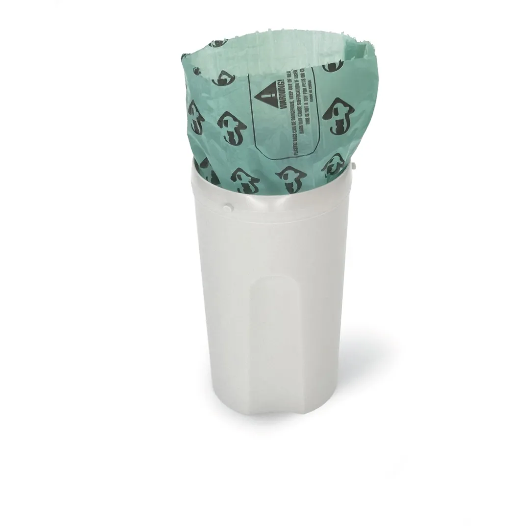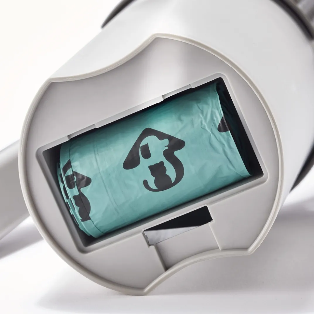 Le secret de cette pelle à litière ? Caché au fond de son réservoir, un compartiment permet de stocker le rouleau de sacs à déchets pour en avoir toujours sous la main quand le sac en place est plein.