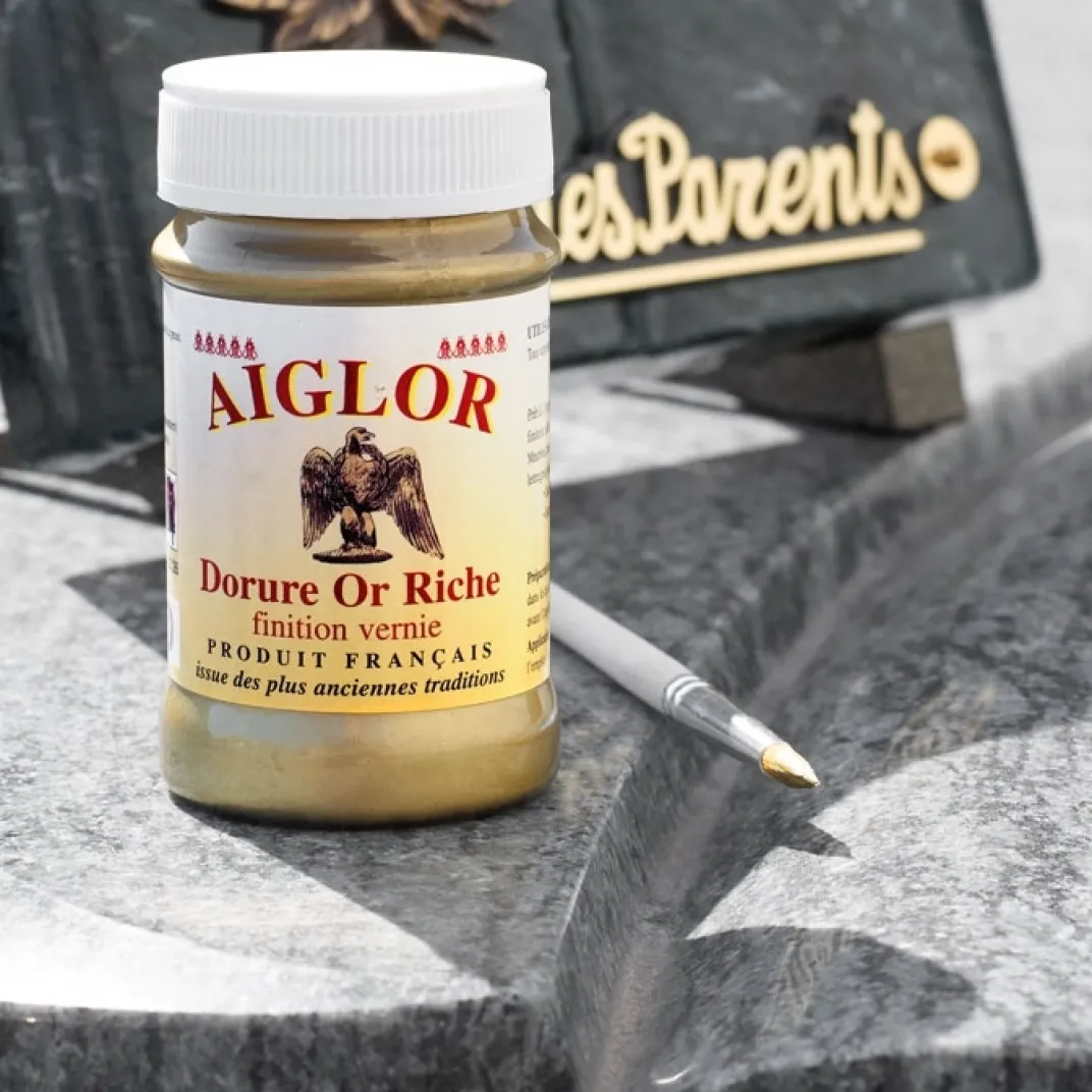 Prêt à l’emploi, ce vernis à dorer permet de restaurer toutes les dorures patinées par le temps, et qui ont besoin d’un coup d’éclat : recommandé pour les plaques funéraires et leurs gravures, il convient également pour tout autre support : objet décoratif, cadre, petite ferronnerie…