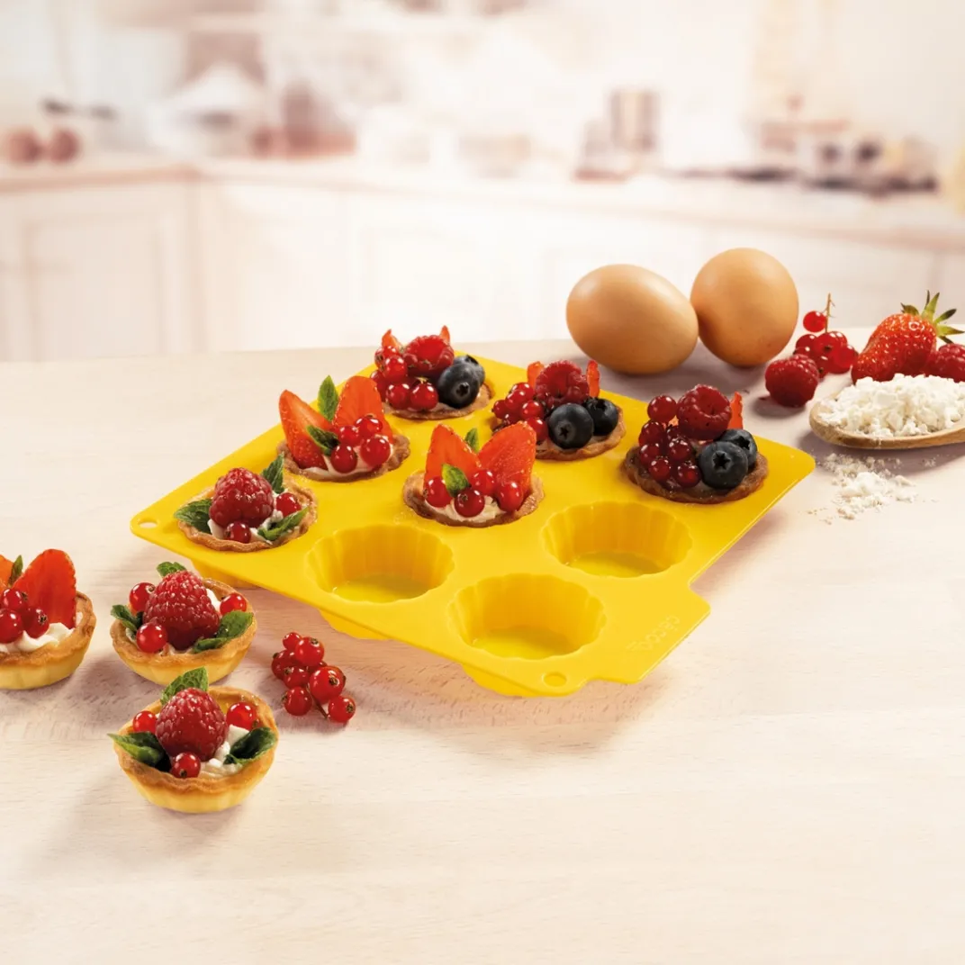 Moule en silicone souple et anti-adhérent pour assurer une cuisson homogène et garantir une forme parfaite au moment du démoulage. Permet de réaliser 9 mini tartelettes en un tour de main.