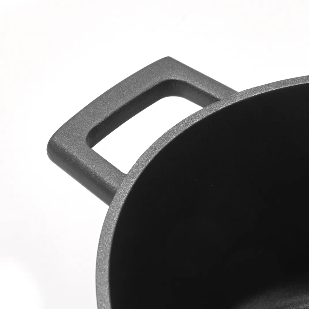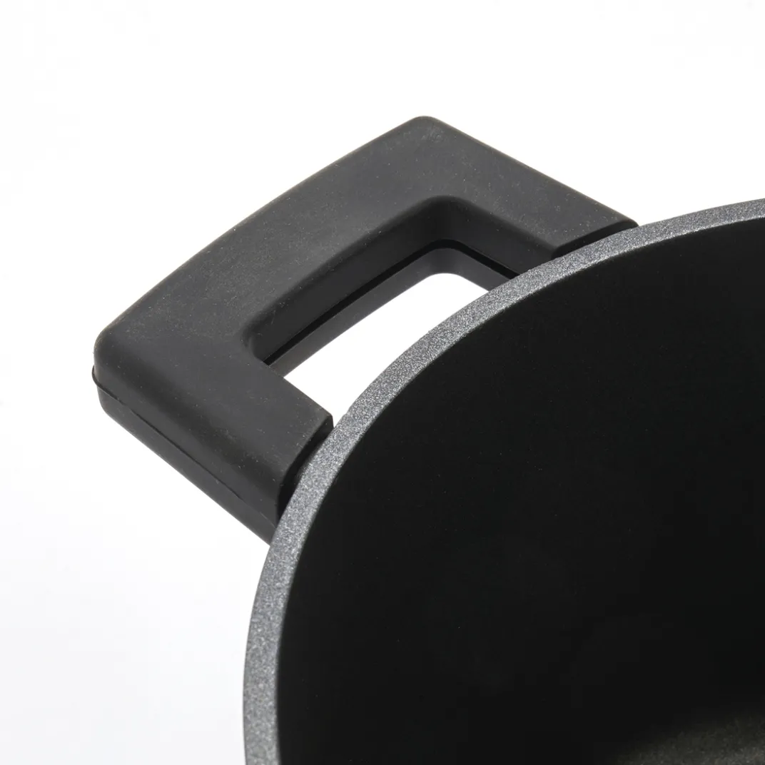 Cocotte robuste et durable, facile à utiliser, dotée d’un revêtement antiadhésif permettant une cuisson uniforme. Son couvercle à picots offre un arrosage continu avec la condensation pour un résultat savoureux. Elle s’utilise sur tous feux et passe même au four. Pour une utilisation sécurisée, 2 protèges-poignées en silicone vous sont offertes !
