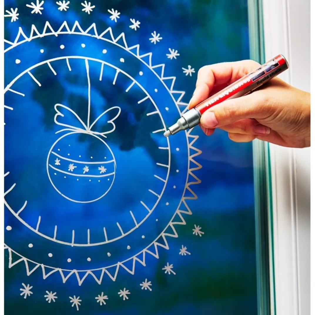 Ardoise, matière plastique, métal, verre et toutes autres surfaces non poreuses seront parfaites pour afficher la magie des fêtes ! Effaçable au chiffon humide.