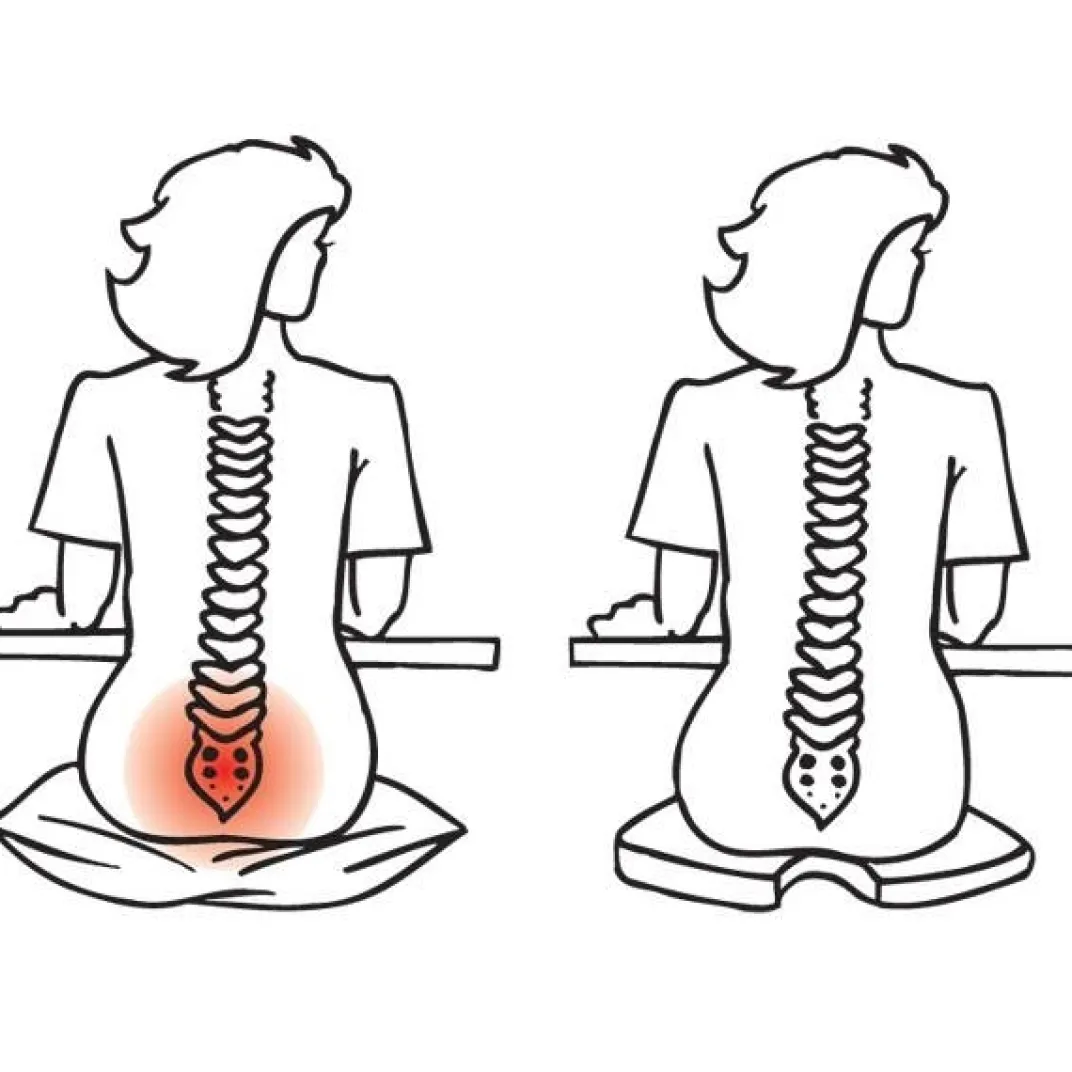 La découpe spéciale du coussin ergonomique contribue à diminuer la pression sur le coccyx