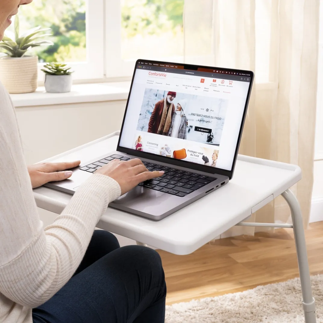 Décorations|Petits Meubles-Tempsl Table TV réglable : Blanc ou Moka