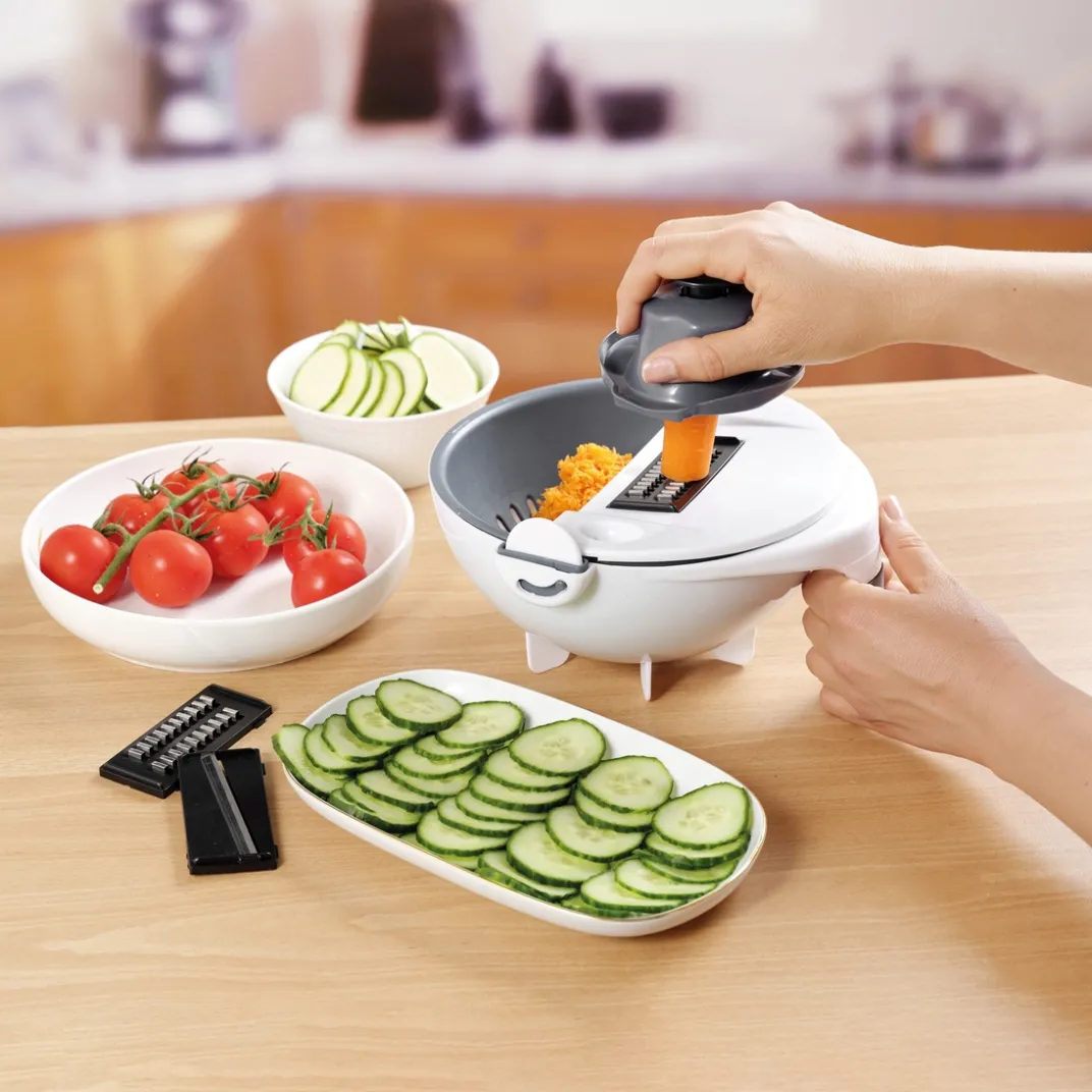 Une conception astucieuse pour cet accessoire de cuisine : il est à la fois une râpe et une passoire. Livré avec 7 lames, vous pourrez varier la coupe de vos ingrédients ! Vous apprécierez également sa fonction passoire, idéale pour égoutter et rincer tous types d’aliments ! Livré également avec un économe et un poussoir de sécurité pour protéger les doigts.