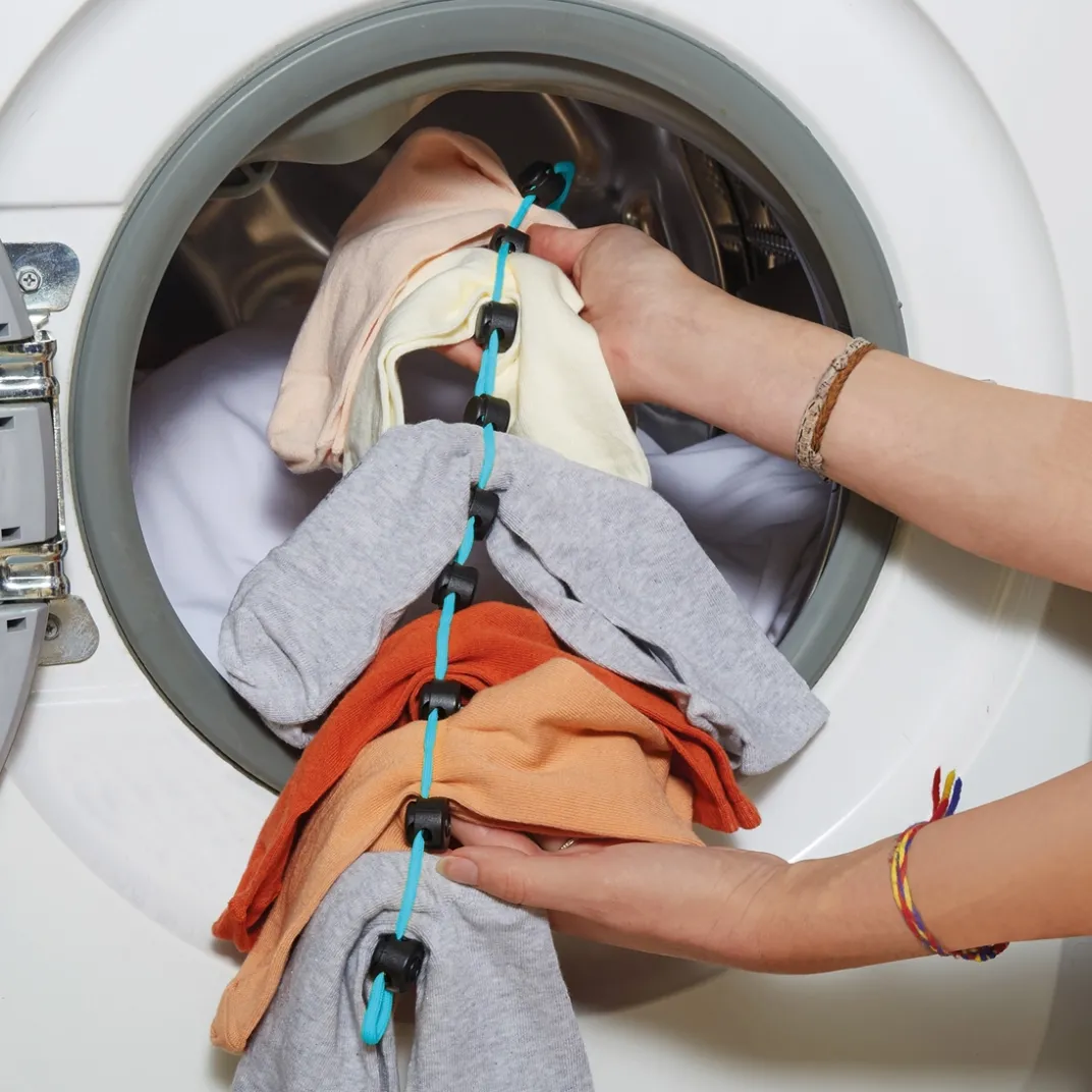 Cet organisateur est un système astucieux, simple et pratique ! Il va vous aider à réunir vos paires de chaussettes avant le lavage, et vous fera économiser du temps pour leur séchage et leur rangement ! Conçu en cordelette avec cran de serrage pour un bon ajustement.