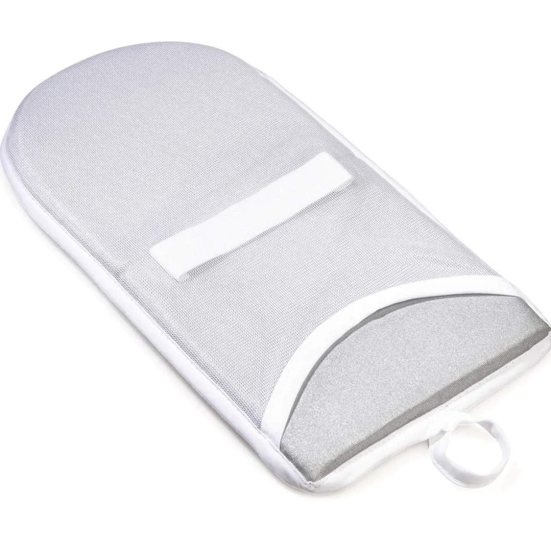 Idéal pour les petites surfaces, ourlets, cols, galons : ce gant remplace une table de repassage. Il suffit de glisser votre main dedans. Son tissu imperméable et isolant vous protège du fer à repasser.