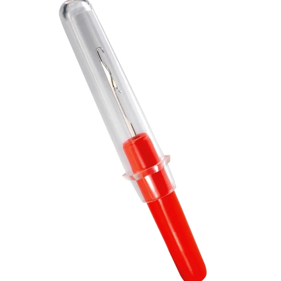 Un fil tiré… une maille qui lâche… ce petit accessoire de mercerie vous aide à en venir à bout sans endommager le vêtement. Sur un support plastique une aiguille métal à bout arrondi, style hameçon, rentre l’accroc à l’envers du vêtement tout en évitant d’accrocher les autres fils. Un système de réparation rapide, facile et quasi invisible.