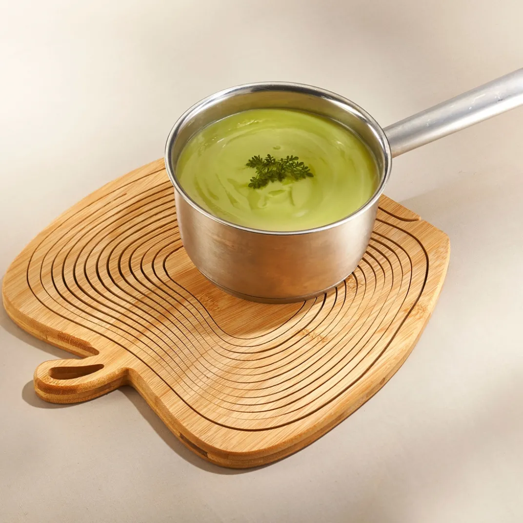Original et très ingénieux, cet ustensile en forme de pomme va véritablement vous surprendre ! 2 en 1, il s’utilise déplié en corbeille à fruits très élégante, mais une fois replié il sert de dessous de plat au design moderne ! Pied stable. Se range facilement.