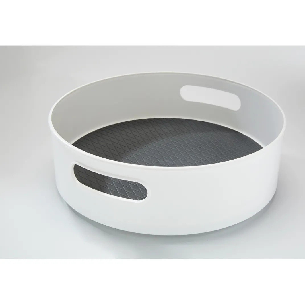 Rangez vos épices, bouteilles d’huiles, sauces, confitures et autres condiments dans le placard de votre cuisine tout en les laissant accessibles. Grâce à ce plateau tournant, vous atteignez ce dont vous avez besoin sans problème même au fond du placard. Le fond antidérapant fait en sorte que rien ne tombe lorsque vous tournez cet , de même que son rebord de 10 cm de haut. Le plateau comporte deux poignées afin de le déplacer du placard jusqu’à la table à manger ou le plan de travail de cuisine plus facilement.