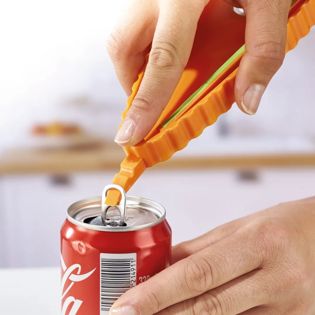 Complète, cet ustensile intègre une languette pour ouvrir les cannettes facilement, un décapsuleur et un ôte-opercules. Aimantée, elle reste à portée de main sur n’importe quelle surface métallique.