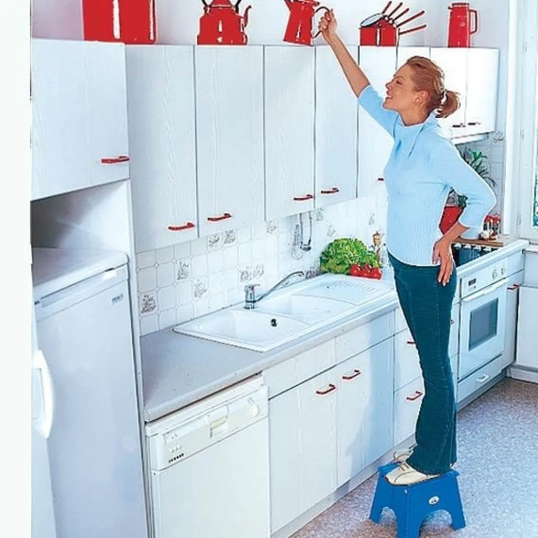 Ce tabouret pliant vous offre toute garantie de solidité et de sécurité (il supporte jusqu’à 150 kg), mais a aussi l’avantage de se replier tout plat (5 cm d’épaisseur) pour se ranger dans un coin ou au bas d’un placard. Et avec ses poignées, il se transporte très facilement.
