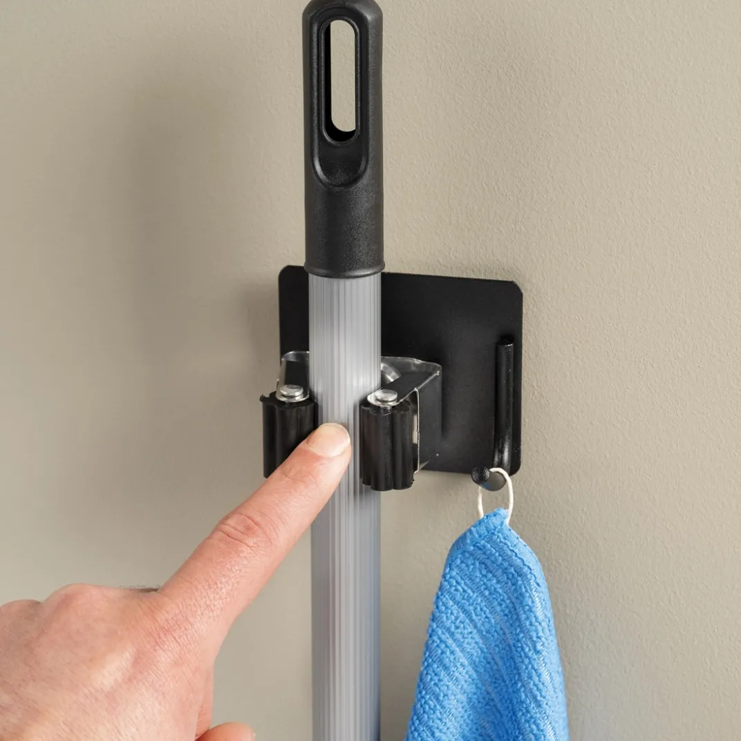 Sa facilité d’installation le rend accessible à tous et il est compatible avec tous types de manches grâce à ses roulettes sur les côtés. Doté d’un crochet, vous pourrez également y suspendre un torchon de vaisselle, une serpillère ou encore une pelle, un râteau, etc. Disposez-le où vous le souhaitez, dans le cellier, la cuisine, le placard de l’entrée, le garage… Il vous permettra d’avoir votre balai à disposition très facilement. Cet accroche balai adhésif se fixe sur le mur dans besoin de clou ni de vis.