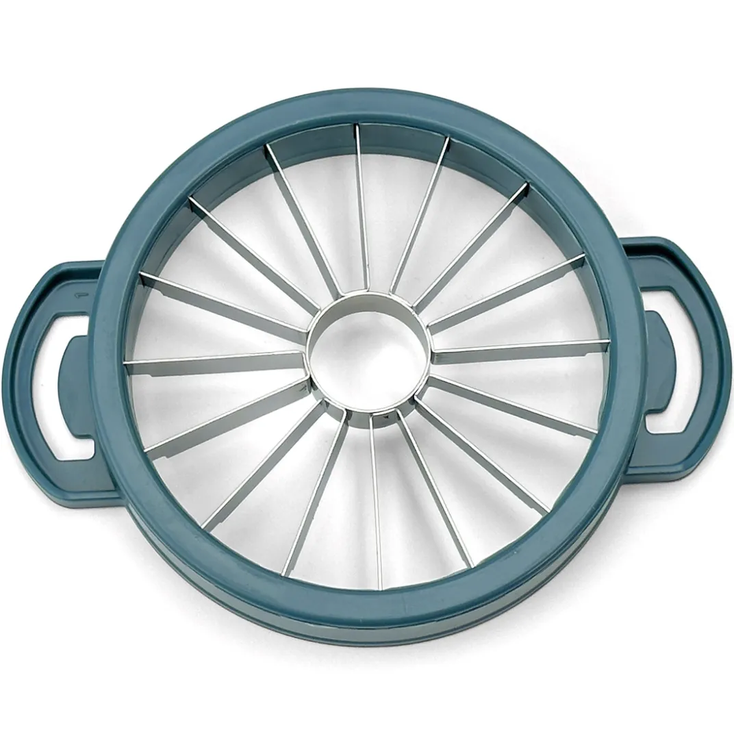 Ce hachoir est doté de 4 grilles interchangeables, d’un bouton poussoir et d’un bac récupérateur de belle contenance (2,4 L). Il propose des coupes en bâtons ou en quartiers uniformes (8 ou 16) et même d’un enlève trognon. Pommes, poivrons, kiwis, carottes, … : amusez-vous à les découper selon vos envies !