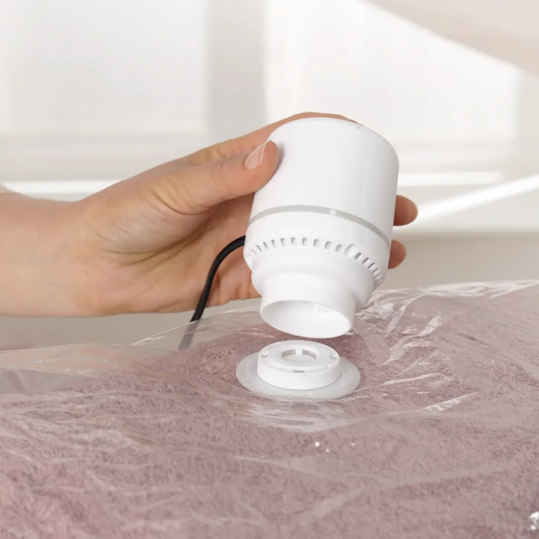 Optimisez le rangement de vos affaires en les stockant dans ces housses sous vide qui diminuent leur volume ! Compressées (= vidées de leur air) grâce à la pompe pratique et facilement transportable, elles deviennent faciles à ranger dans un minimum d’encombrement : gain de place assuré dans vos placards !