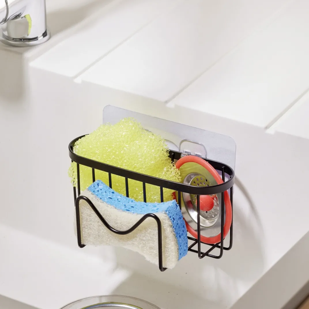 Pour garder un plan de travail ordonné, positionnez ce support adhésif, sur la paroi de votre évier ! Il permet le séchage rapide et hygiénique de vos éponges, tout en les gardant directement à portée de main.