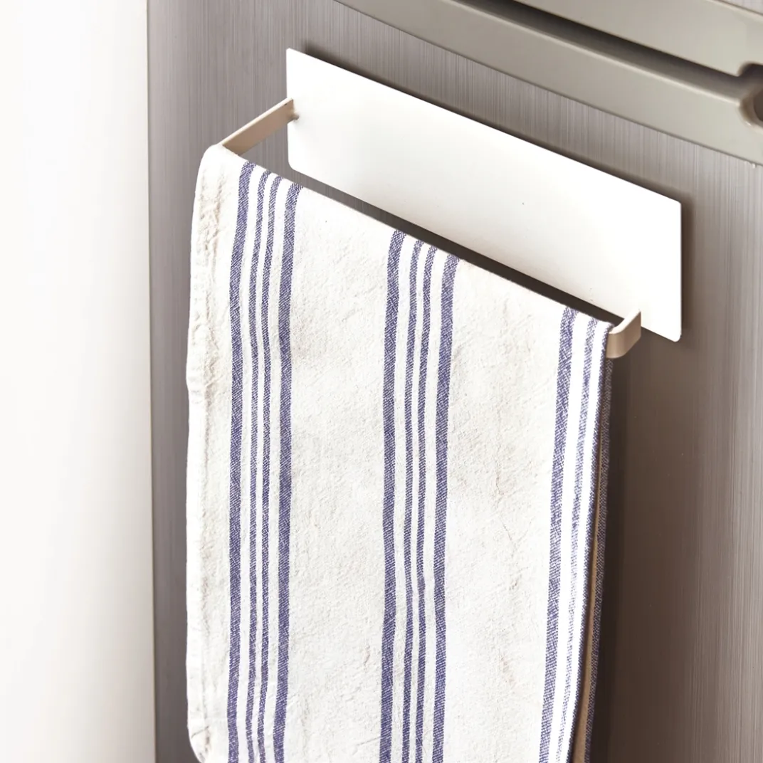 Pensé pour recevoir le rouleau d’essuie-tout, ce support très utile adhère sur toutes les surfaces métalliques ! Cet accessoire de cuisine vous permet de garder à portée de main l’essuie-tout et de découper les feuilles facilement. Astuce : vous pouvez également y suspendre un torchon.
